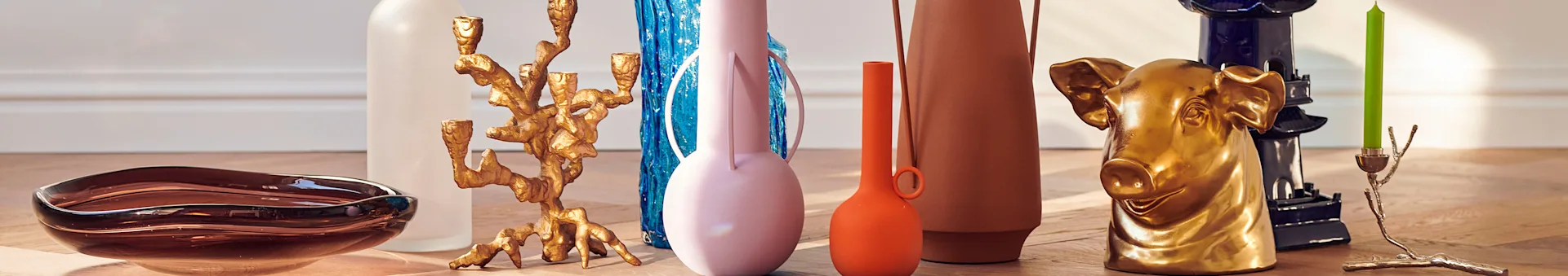 Entre el menaje del hogar más popular de POLSPOTTEN encontrarás por ejemplo, los candelabros Folding Round y Drip, y el jarrón Coral.
