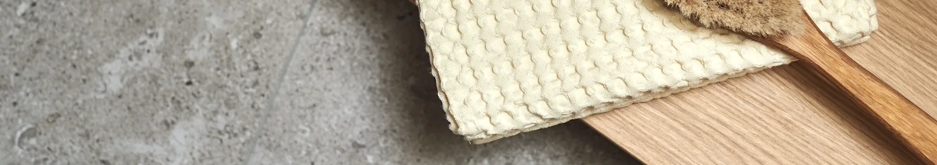 Aquí encontrarás una gran selección de textiles de alta calidad para el cuarto de baño, como toallas de manos y toallas grandes de marcas escandinavas de renombre, diseñadas para crear un ambiente acogedor y confortable en el baño.
