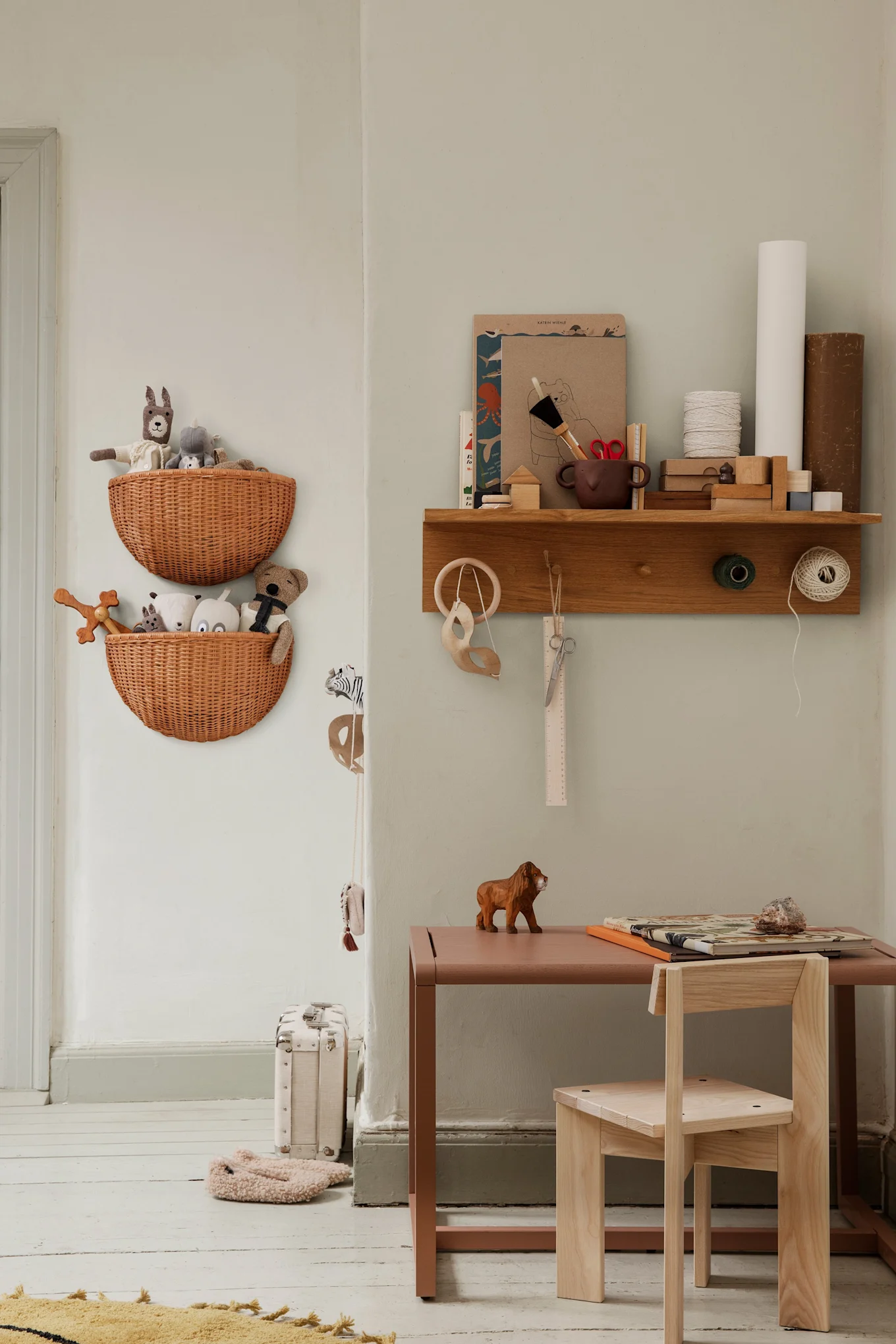 Soluciones de almacenamiento prácticas como cestas o cajas de alamacenamiento pueden mantener organizados pequeños objetos como llaves, mantas o juguetes. Una manta en una cesta junto al sofá o un elegante llavero en el pasillo aseguran que todo esté al alcance de la mano y ordenado.