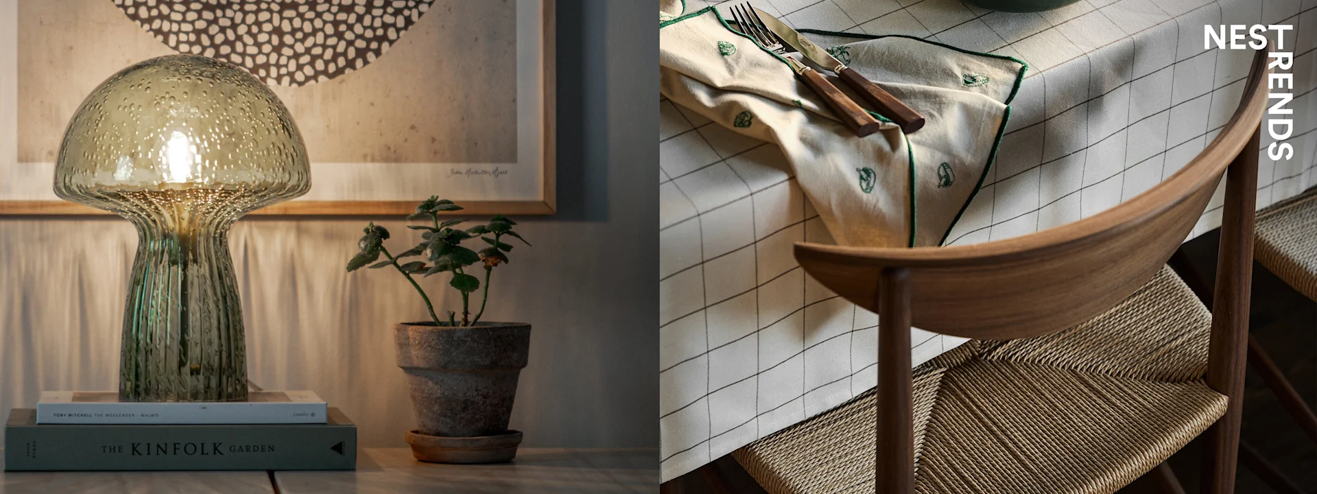 En la tendencia Grounding Maximalism la naturaleza ocupa un lugar central. Desde decoraciones inspiradas en setas hasta piezas de mobiliario curvado que ondean por la habitación, esta tendencia se trata de traer el exterior al interior del hogar. Se trata de un mundo altamente cuidado donde los objetos decorativos parecen hechos a mano, y nos rodeamos de hierbas y especias cultivadas en casa. El Grounding Maximalism es imaginativo, artesanal y personal.