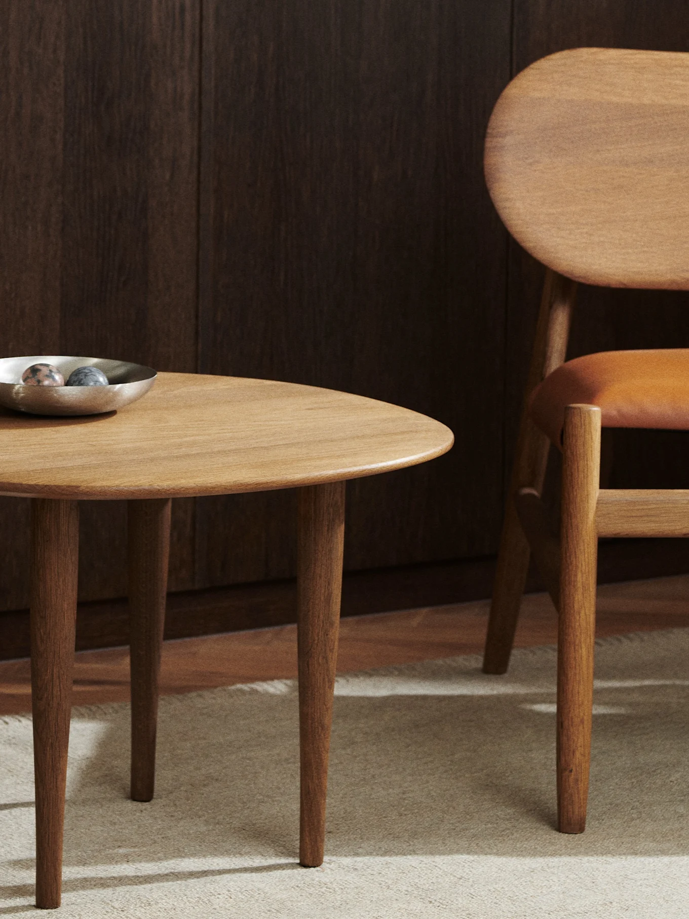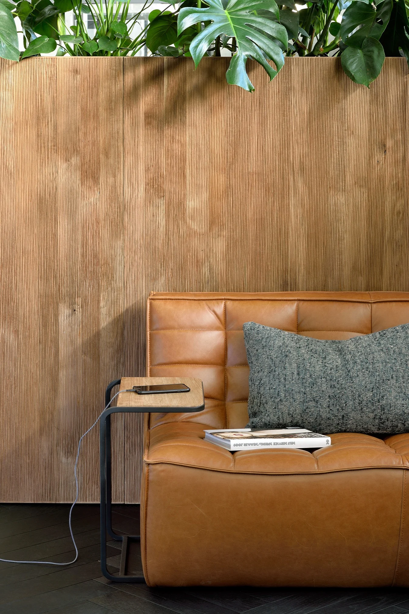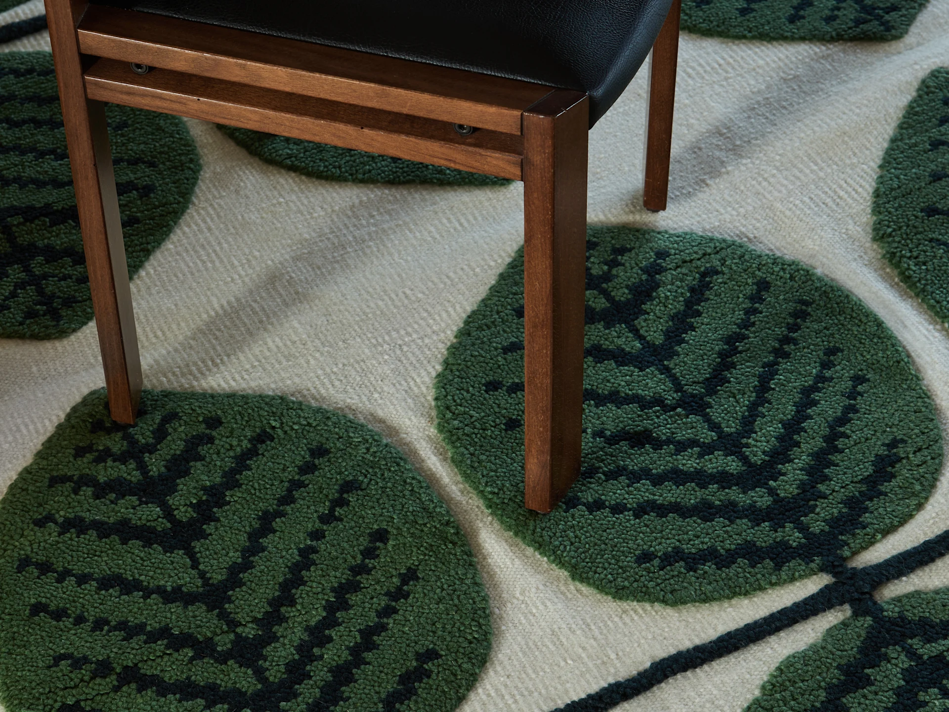El cuero juega un papel clave en el Grounding Maximalism, especialmente cuando se trata de asientos. El cromo hace otra aparición en esta tendencia, en forma de elegantes muebles con estructura de alambre y almacenamiento. Las alfombras de lana estampadas y las acogedoras mantas de algodón encuentran su lugar entre piezas de madera y detalles de cristal delicados. La elección de materiales es natural con un toque artesanal.