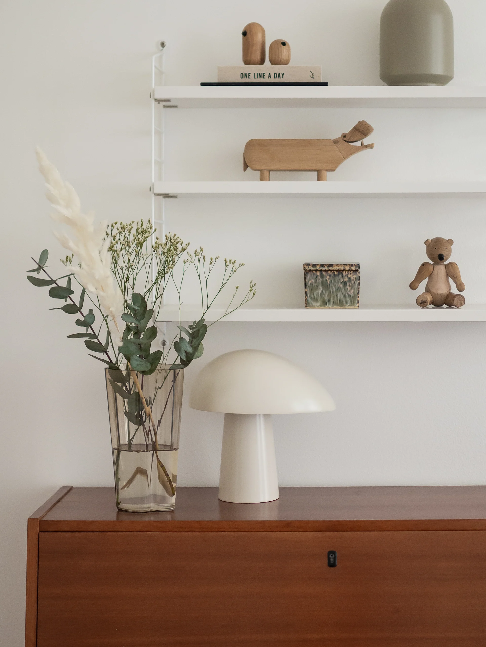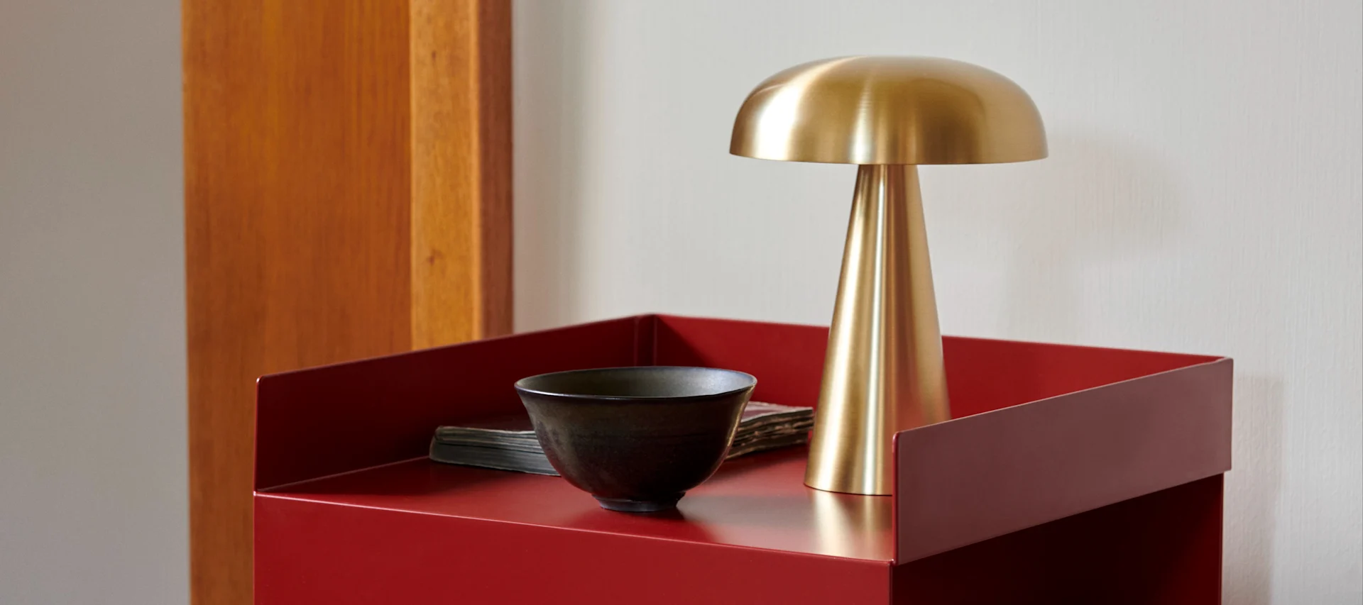 La lámpara portátil Carrie deAudo Copenhagen, un clásico del diseño danés moderno.
