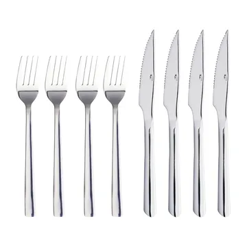 8 Cubiertos de carne Raw de la marca danesa Aida es un elegante juego de cubiertos compuesto por cuatro tenedores y cuatro cuchillos para carne con hoja dentada que facilitan cortar, por ejemplo, un trozo de carne. Estos atractivos cubiertos han sido desarrollados en colaboración entre la marca y la personalidad televisiva danesa Christiane Schaumburg-Müller. Los cubiertos están disponibles en distintos colores para que encuentres el juego que mejor encaje en tu hogar.