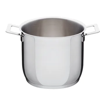 La kittel Calderón Pots&Pans de Alessi está fabricada en acero inoxidable de alta calidad y alto brillo. El diseño de la kittel es obra de Jasper Morrison y su forma la hace ideal para cocer pasta, sopas o guisos. Su fondo magnético permite usarla en todo tipo de cocinas.