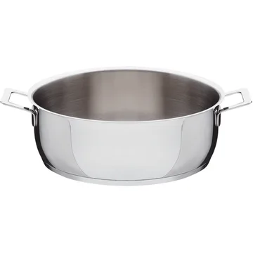 Olla baja Pots&Pans de Alessi es perfecta para cocinar y calentar desde salsas hasta guisos consistentes. Está fabricada en acero inoxidable con acabado brillante y cuenta con dos asas prácticas para facilitar su manejo. El diseño minimalista y elegante es obra de Jasper Morrison, al igual que el resto de la serie Pots&Pans.