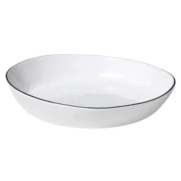 Bol para servir Salt de la danesa Broste Copenhagen forma parte de una encantadora colección de porcelana de aspecto rústico, cuya estética se inspira en la sal mineral y en la que cada pieza presenta una textura única lograda mediante un proceso especial de esmaltado. La suave y asimétrica forma del bol se realza con un borde pintado a mano en un color de contraste. Perfecto para servir ensaladas y platos de pasta.