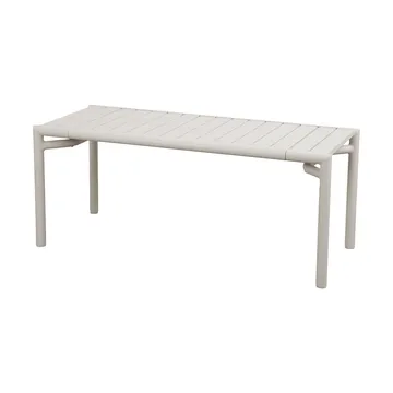 La Mesa de centro/banco Bliss de Cane-Line es un elemento versátil y elegante para la zona lounge del hogar. Fabricada en aluminio con recubrimiento en polvo, combina ligereza con resistencia a la intemperie y un mantenimiento sencillo. Su diseño limpio y minimalista permite usarla tanto como mesa de centro como asiento adicional cuando sea necesario. Junto con el sofá Bliss y la butaca lounge Bliss, crea un espacio lounge armonioso y flexible que invita al relax y a la convivencia. Una elección meditada para quienes desean combinar funcionalidad, estética nórdica y materiales duraderos en casa.