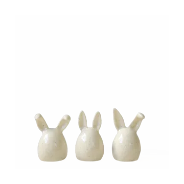 Los conejos de Pascua Triplets de DBKD vienen en un juego de tres lindas decoraciones de cerámica. La silueta suave y minimalista de los tres conejitos de Pascua con dos orejas de conejo que se inclinan de diferentes maneras es una interpretación moderna del clásico conejito de Pascua. Las encantadoras decoraciones se pueden colocar tanto en la mesa, en el escritorio o el alféizar de la ventana durante la Pascua.