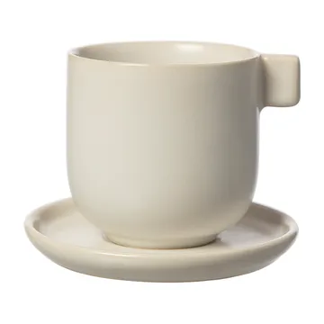 Taza de café y platillo Ernst 8,5 cm están fabricados en gres y tanto la taza como el platillo presentan un diseño minimalista. La taza tiene un pequeño asa rectangular situada en el borde superior que facilita su agarre y a la vez realza su apariencia elegante. La taza de café y platillo Ernst 8,5 cm es una excelente opción tanto para el café de la mañana como para el descanso de la tarde y constituye un bonito complemento para tu vajilla actual.