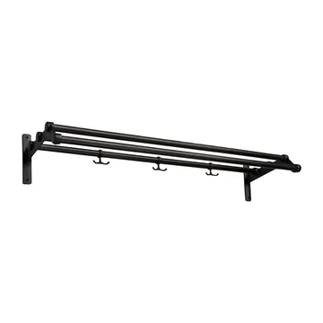 Estante sombrerero Nostalgi 291 100 cm de Essem Design es el sucesor del clásico Nostalgi y se diferencia en que es un estante sombrerero más profundo, con mayor espacio para perchas. Los soportes de la balda sujetan cuatro varillas redondas y vienen con tres ganchos ancla que se pueden colocar en cualquier varilla. Nostalgi es flexible: puedes convertirlo en un estante más corto acortando las varillas para adaptarlo a un recibidor más pequeño. Si quieres un estante largo, puedes ampliarlo con un módulo adicional y así dejarlo exactamente de la longitud que desees. Combina el estante sombrerero Nostalgi 291 con la repisa para zapatos Nostalgi para lograr un estilo uniforme en tu recibidor.