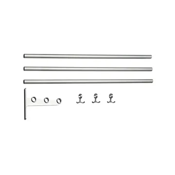 Estante sombrerero o zapatero adicional Nostalgi de Essem Design, diseñado por Gunnar Bolin, es un clásico atemporal de 1937. El estante puede usarse como zapatero o como perchero para sombreros y está fabricado en aluminio reciclado y varilla redonda en madera o aluminio. Se suministra con ganchos y puede ampliarse para adaptarse a tus necesidades. Se recomiendan como máximo diez perchas por metro de perchero. Ajusta a tu medida cortando las varillas a la longitud deseada.
