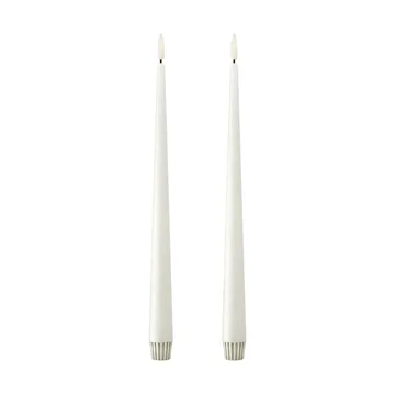 Velas alargadas LED ester & erik 30 cm 2-pack están hechas de cera real y se ofrecen en los colores clásicos de ester & erik. Con una llama LED 3D realista que parpadea suavemente, las velas emiten una luz cálida y acogedora. El diseño elegante de las velas, fiel a la forma icónica de ester & erik, se adapta perfectamente a muchos candelabros diferentes gracias a la base flexible. Crea una iluminación ambiental en tu hogar sin comprometer la seguridad: ideal tanto para ocasiones festivas como para el día a día.