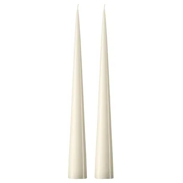 2 Velas ester & erik 37 cm lacado — ester & erik konljus son velas artesanales exclusivas que encajan en cualquier ocasión. Tienen un elegante diseño cónico que permite que la vela se sostenga por sí sola, por lo que no es necesario un portavelas. Colócalas sobre un plato o bandeja para velas de vidrio o mármol. Son autoextinguibles y aportan un ambiente acogedor a la mesa puesta. Disponibles con acabado mate o lacado.