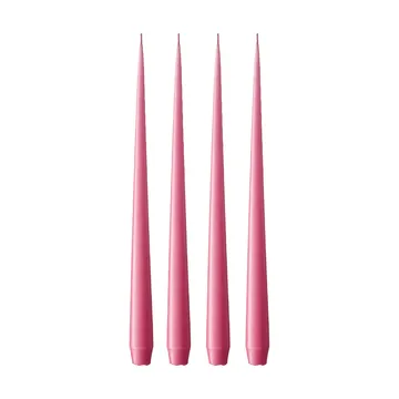 Velas color vino tinto de la marca danesa Estrik & Erik para quienes prefieren una paleta de tonos más sobria e intensa. Las velas están hechas a mano con una elegante forma cónica que se estrecha en la parte superior. La base tiene forma de cono para encajar en la mayoría de los candelabros. Quedan bien tanto en candelabros bajos como altos. Disponibles con acabado mate o barnizado.