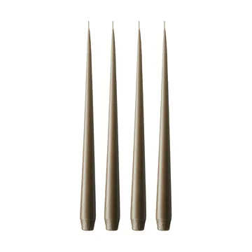Velas color vino tinto de la marca danesa Estrik & Erik para quienes prefieren una paleta de tonos más sobria e intensa. Las velas están hechas a mano con una elegante forma cónica que se estrecha en la parte superior. La base tiene forma de cono para encajar en la mayoría de los candelabros. Quedan bien tanto en candelabros bajos como altos. Disponibles con acabado mate o barnizado.