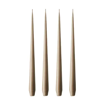 Velas color vino tinto de la marca danesa Estrik & Erik para quienes prefieren una paleta de tonos más sobria e intensa. Las velas están hechas a mano con una elegante forma cónica que se estrecha en la parte superior. La base tiene forma de cono para encajar en la mayoría de los candelabros. Quedan bien tanto en candelabros bajos como altos. Disponibles con acabado mate o barnizado.