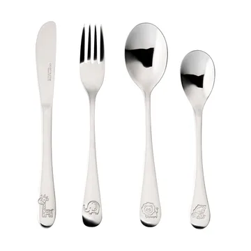 Cubertería infantil Eternum es un encantador set de cubiertos de acero inoxidable que hace cada comida más divertida para los niños. Divertidos motivos de animales decoran el cuchillo 17,6 cm, el tenedor 17 cm, la cuchara 16 cm y la cucharita 14 cm. La superficie es de alto brillo y resistente, en acero 18/0 que soporta un uso intensivo. Su forma ofrece un agarre estable pero ligero para manos pequeñas y fomenta la autonomía al comer. Un regalo duradero que combina funcionalidad, seguridad y alegría en la mesa. Adecuado para el día a día y los fines de semana, se convertirá rápidamente en un favorito en la cocina.