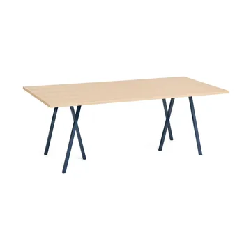 La 'Loop Stand mesa de comedor 92,5x200 cm de HAY está diseñada por Leif Jørgensen y combina un tablero rectangular con exclusivos soportes de tres patas. Esto le da una expresión gráfica distintiva. La mesa se ofrece en varios tamaños, materiales y colores, lo que permite que se adapte a diversos entornos.