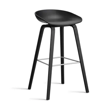 Taburete alto About a Stool 32 con base de roble negro 2.0, Soporte de acero inoxidable negro HAY