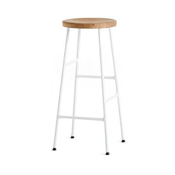 Cornet taburete 75 cm de HAY, diseñado por Jonas Trampedach, es un taburete clásico con un diseño innovador de tubo de acero inspirado en portabicis. El asiento está compuesto de madera maciza de roble redonda y descansa sobre una base de acero estilizada, creando una proporción interesante. Disponible en dos alturas con diferentes acabados para el asiento y las patas, ya sea cromadas o con recubrimiento en polvo. Perfecto para varios entornos, como en barras, islas de cocina y superficies de trabajo.
