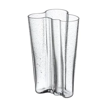 Jarrón Alvar Aalto 200 mm de Iittala es una pieza artesanal exclusiva y un icono de diseño atemporal. Soplado a mano en molde de madera por artesanos del vidrio de Iittala, cada jarrón adquiere una textura superficial única que captura y refleja la luz de forma hermosa. Como los moldes de madera se usan solo un número limitado de veces, surgen variaciones sutiles que hacen que cada ejemplar sea único. La forma icónica y orgánica, inspirada en el fluir de la naturaleza, aporta una expresión elegante a todo tipo de interiores. Gracias a su diseño escultórico, el jarrón resulta igualmente impactante con flores que como un elemento decorativo independiente.