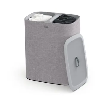 Cesto para ropa Tota 90 L de Joseph Joseph facilita el día de la colada con sus funciones prácticas. Cuenta con dos bolsas de tela de 45 L cada una para separar las prendas claras y oscuras. Asa en la parte superior y un asa auxiliar en la base facilitan su transporte y vaciado. El borde autoajustable garantiza una colocación sencilla.