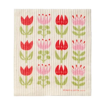 Paño de cocina Tulip 17x20 cm de Klippan Yllefabrik está fabricado con celulosa compostable y algodón. Con su encantador estampado de tulipanes, diseñado por Bengt & Lotta, no solo es práctico para limpiar y absorber derrames, sino también agradable a la vista. Combínalo con otros productos de la serie Tulip.