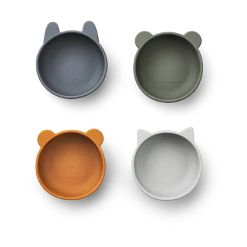 Cuenco de silicona Iggy 4 piezas de Liewood está fabricado en 100% silicona y es ideal para las primeras comidas del bebé. Estos cuencos de silicona son irrompibles, aptos para lavavajillas y decorados con divertidos detalles de animales. Su tamaño compacto es perfecto para pequeñas raciones o snacks.