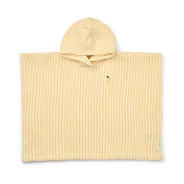Poncho de baño Paco lemon yellow creme de la creme a rayas de Liewood es un poncho de baño suave y ligero, confeccionado en 100 % algodón orgánico con certificación GOTS. Su textura de gofre aporta alta absorción y una sensación agradable sobre la piel, ideal tras el baño o en la playa. La capucha con un delicado detalle bordado ayuda a mantener el calor y seca el cabello. Los laterales abiertos facilitan ponérselo y moverse con comodidad. Un imprescindible funcional que combina secado rápido, poco peso y un diseño atemporal para todos los momentos acuáticos del día a día, en casa o de vacaciones.