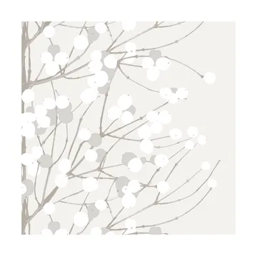 Servilletas de papel con el estampado Lumimarja de Marimekko, diseñado por Erja Hirvi en 2004. El motivo invernal con ramas y bayas es perfecto para una mesa de inspiración natural. Un paquete contiene 20 servilletas fabricadas con papel certificado por FSC. Cada servilleta tiene tres capas, lo que aporta una sensación de calidad.