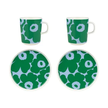 Set de desayuno Unikko, White-green-light blue, 4 piezas Marimekko