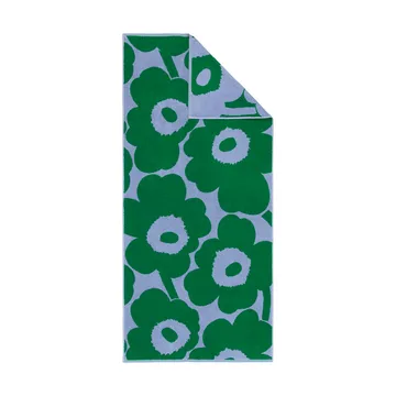 Toalla de baño Unikko 70x150 cm de Marimekko es una toalla suave y decorativa diseñada por Maija Isola dentro de la icónica colección Unikko. Confeccionada en rizo de algodón orgánico, ofrece buena capacidad de absorción y una sensación agradable sobre la piel. Los colores del estampado están invertidos en el reverso, lo que aporta una versatilidad lúdica que anima el baño. Perfecta para envolverse tras la ducha o para acompañar en la piscina: un diseño atemporal que resulta personal y alegre.