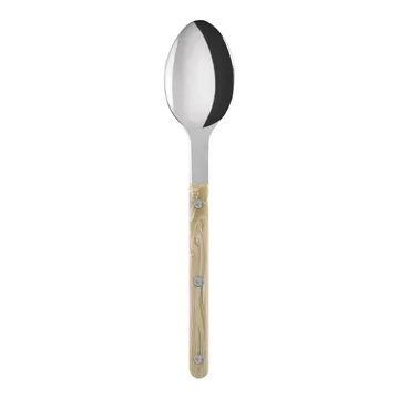 Cuchara de mesa Bistrot del sello francés Sabre Paris: una pieza de cubertería que combina un aire juguetón con el clasicismo. Está fabricada en acero inoxidable con mangos de acrílico o teca de alta calidad, producidos en la propia fábrica de Sabre Paris en Francia. Disponible en varios colores de mango. Complementa la colección con otros cubiertos como el cuchillo y el tenedor de mesa de la serie Bistrot.