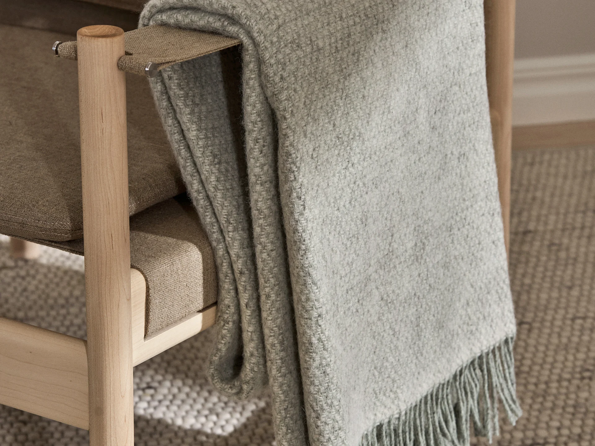 Las populares alfombras se pueden encontrar en series como Flock, con alfombras de lana tejidas a mano en materiales suaves, que también se pueden combinar con una manta de lana de la misma calidad suave.