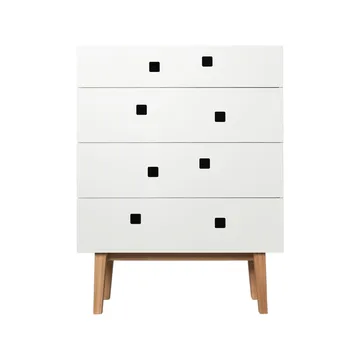 La cómoda Peep B3 de Zweed, diseñada por Håkan Johansson, tiene cuatro cajones que ofrecen amplio espacio de almacenamiento. Las asas asimétricas crean un efecto visual singular y a la vez amortiguan el cierre de los cajones para una experiencia silenciosa y suave. Esta cómoda está disponible en varios modelos y colores para adaptarse a diferentes estilos de interior.