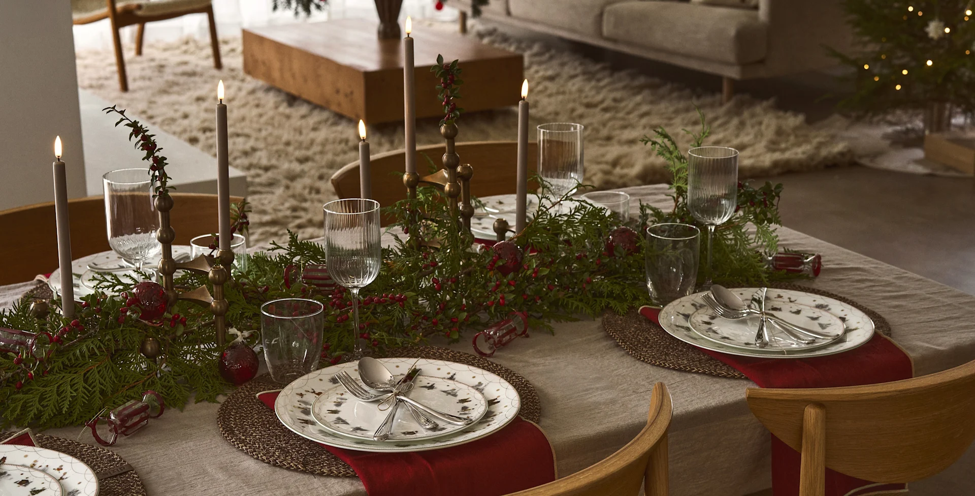 La vajilla navideña con adornos de temporada es una opción popular durante las fiestas, como la colección de Wik & Walsøe llamada Julemorgen, que en danés significa «mañana de Navidad».