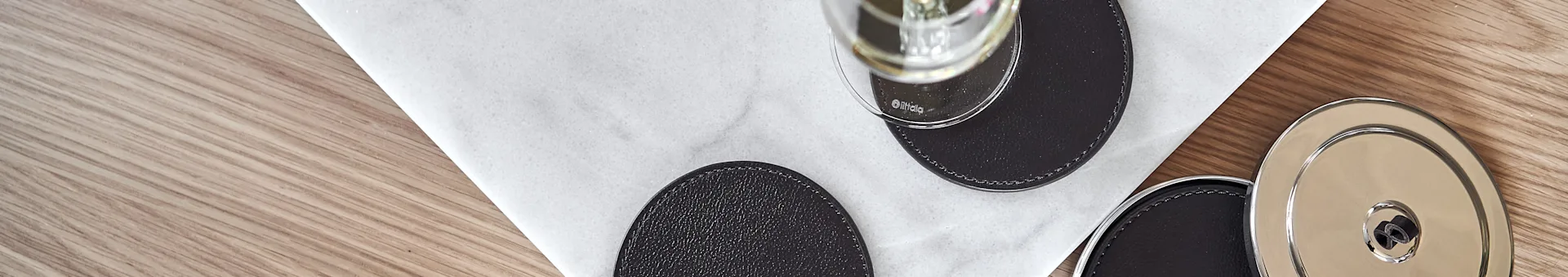 El cuero es un material natural y duradero que es perfectamente adecuado para posavasos elegantes.