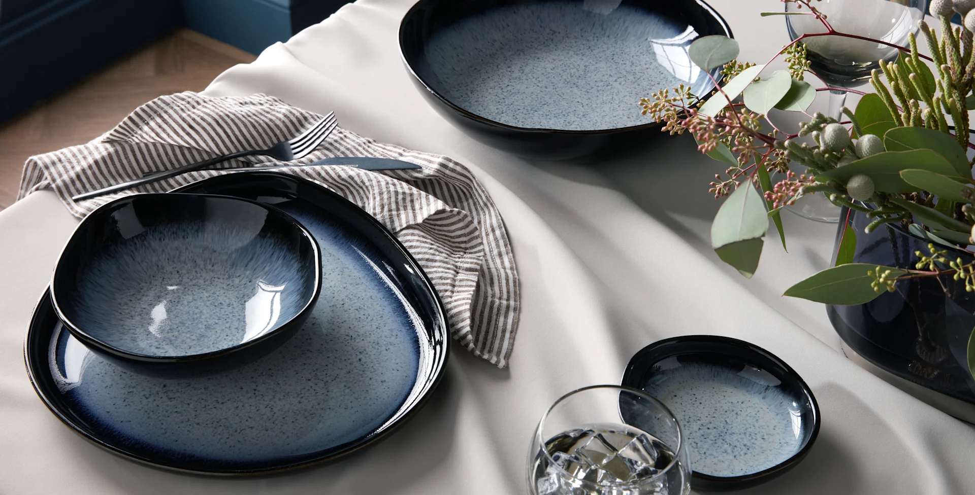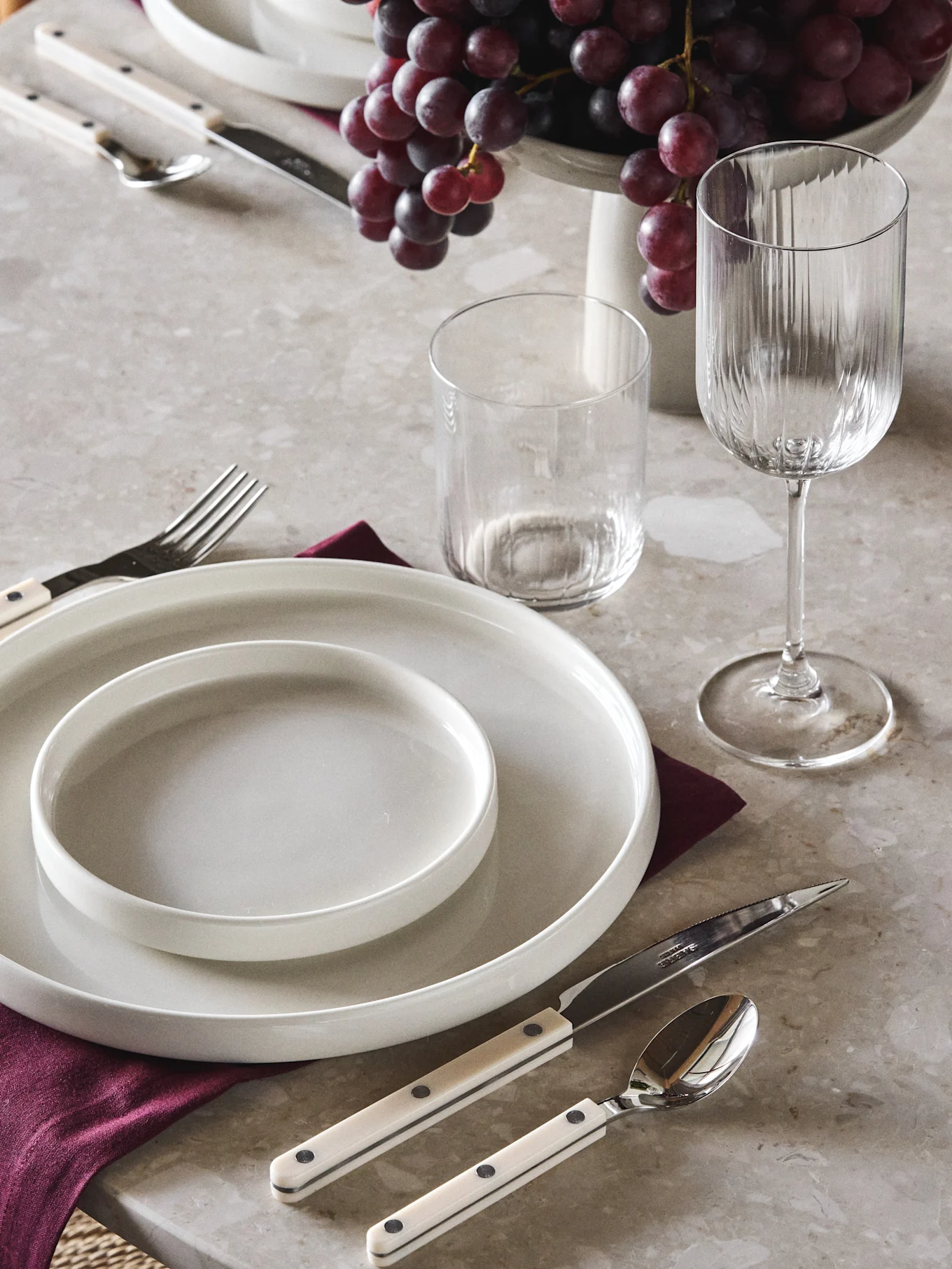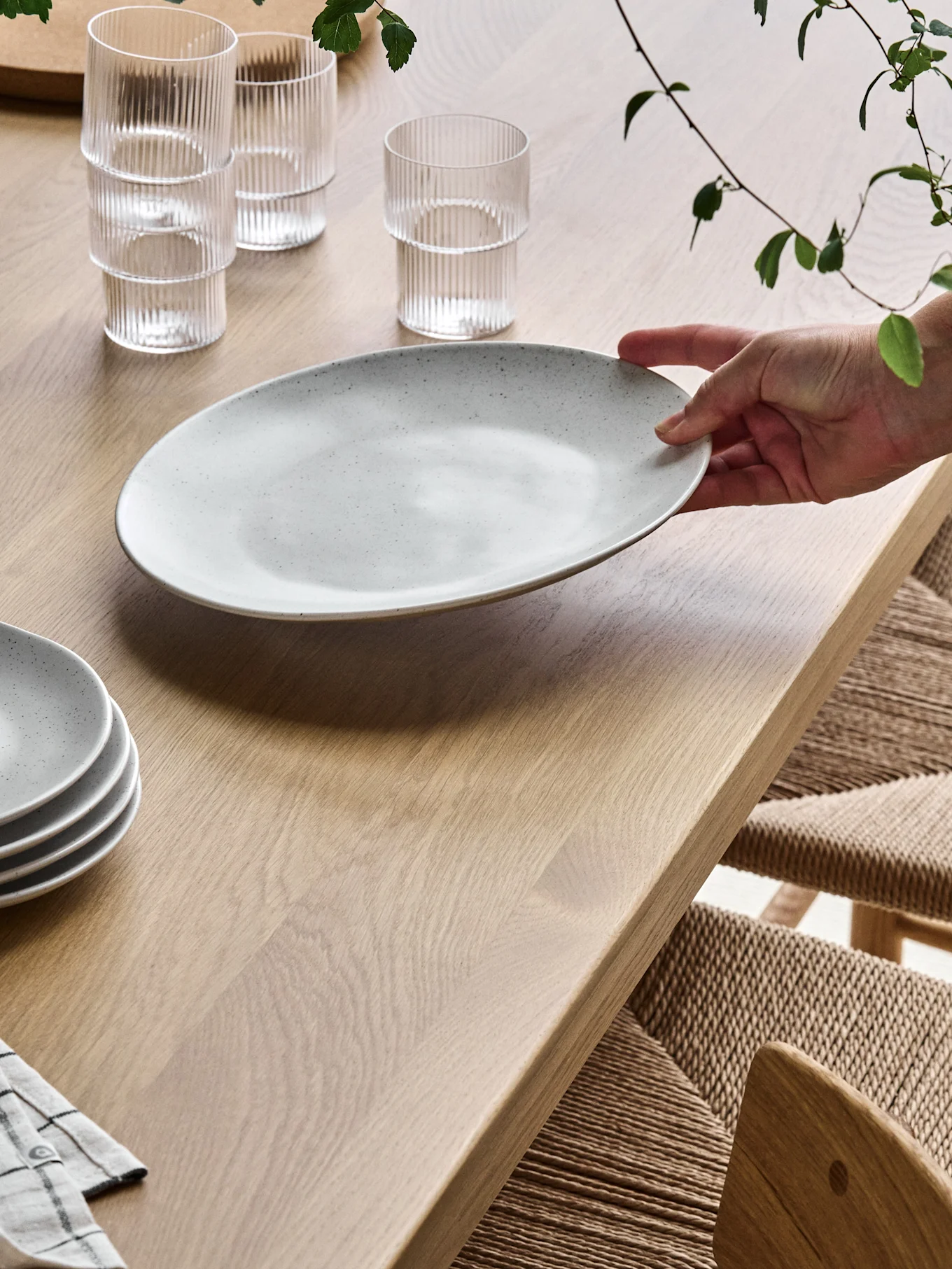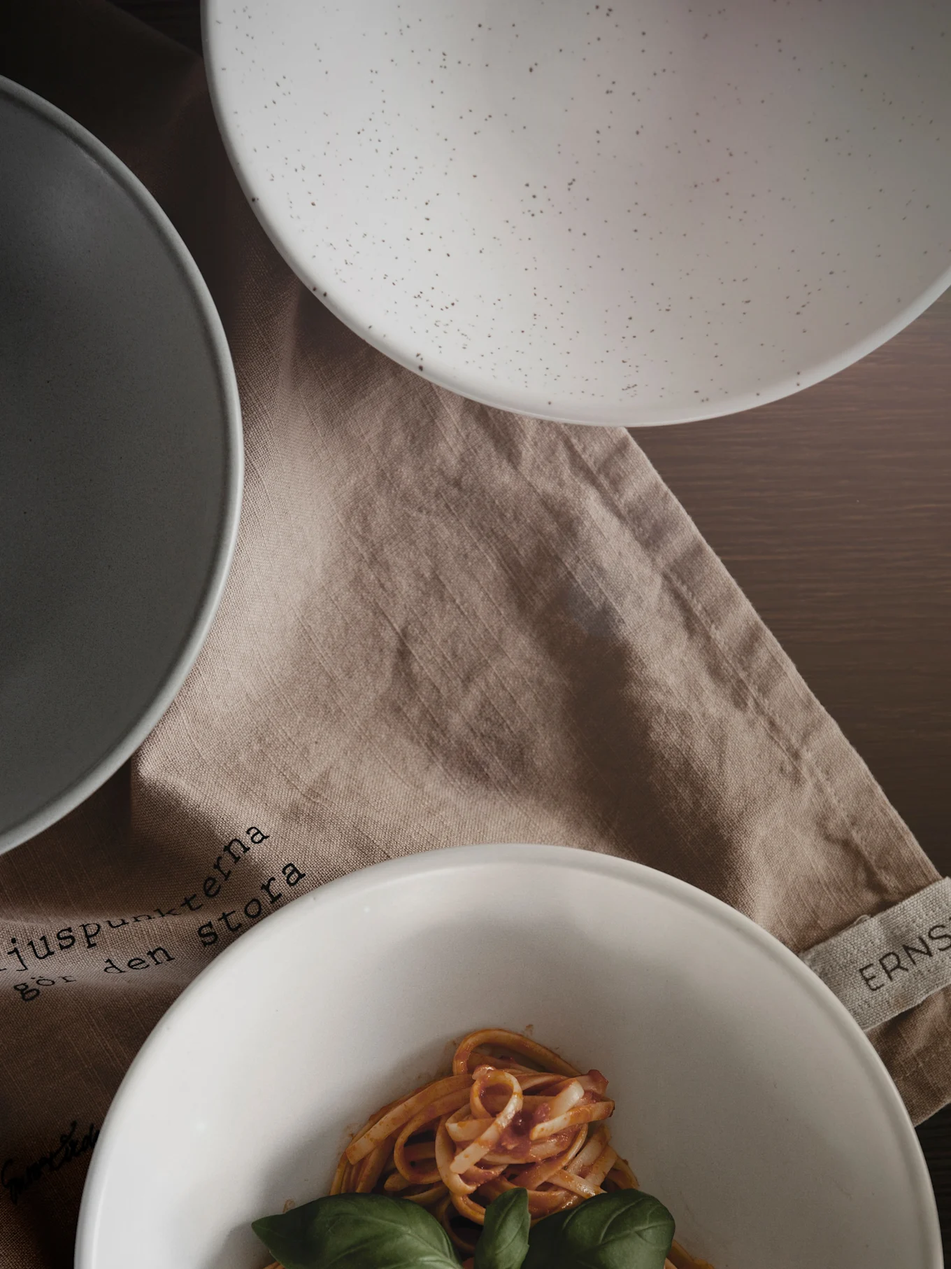 El tipo de plato más común es, por supuesto, el plato llano Los platos llanos ocupan un lugar central en todos los arreglos de mesa, tanto en sentido literal como figurado. Un plato rústico como los de la colección Nordic Sea de Broste Copenhagen puede ayudar a crear un ambiente relajado para la cena.