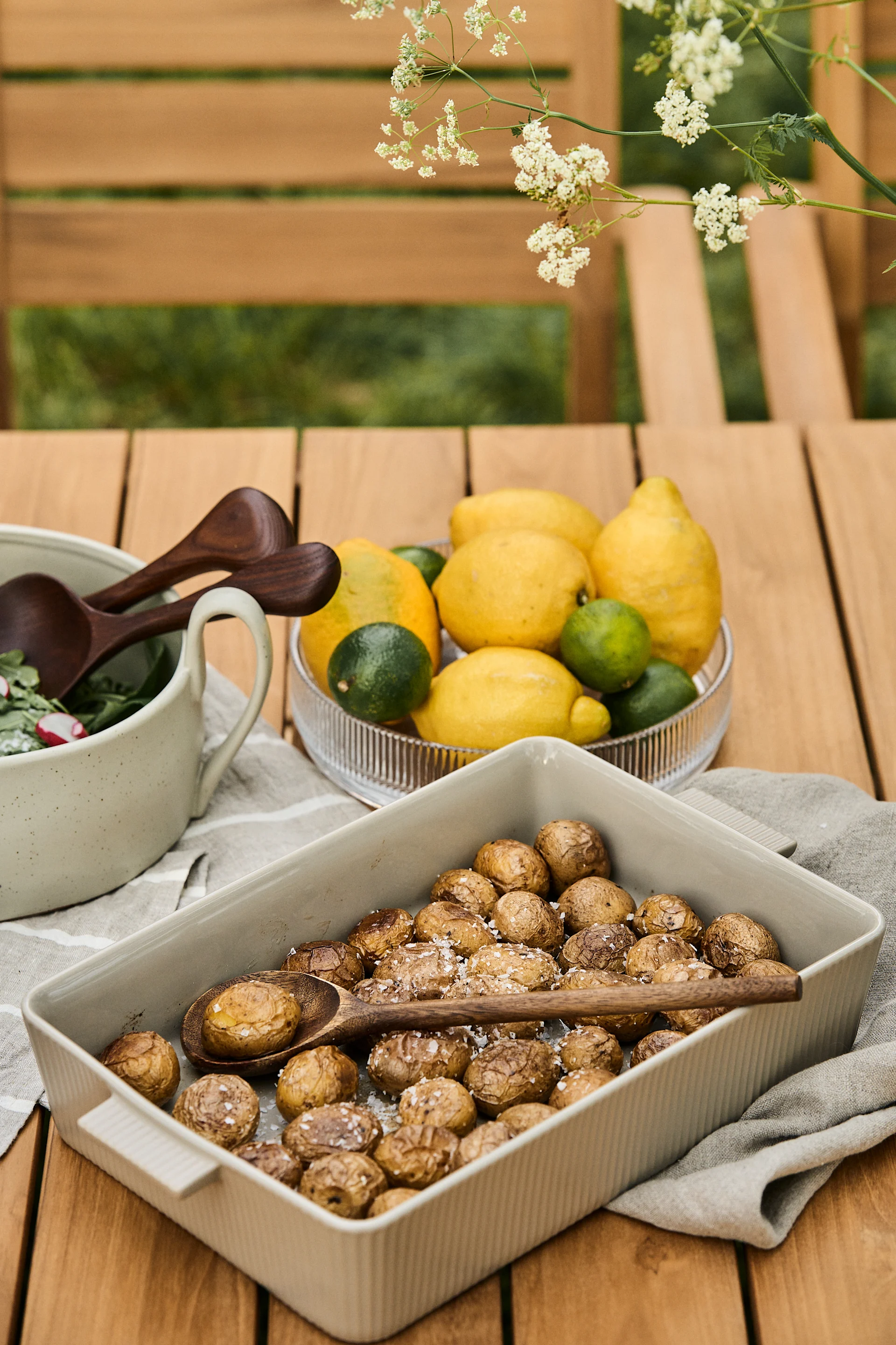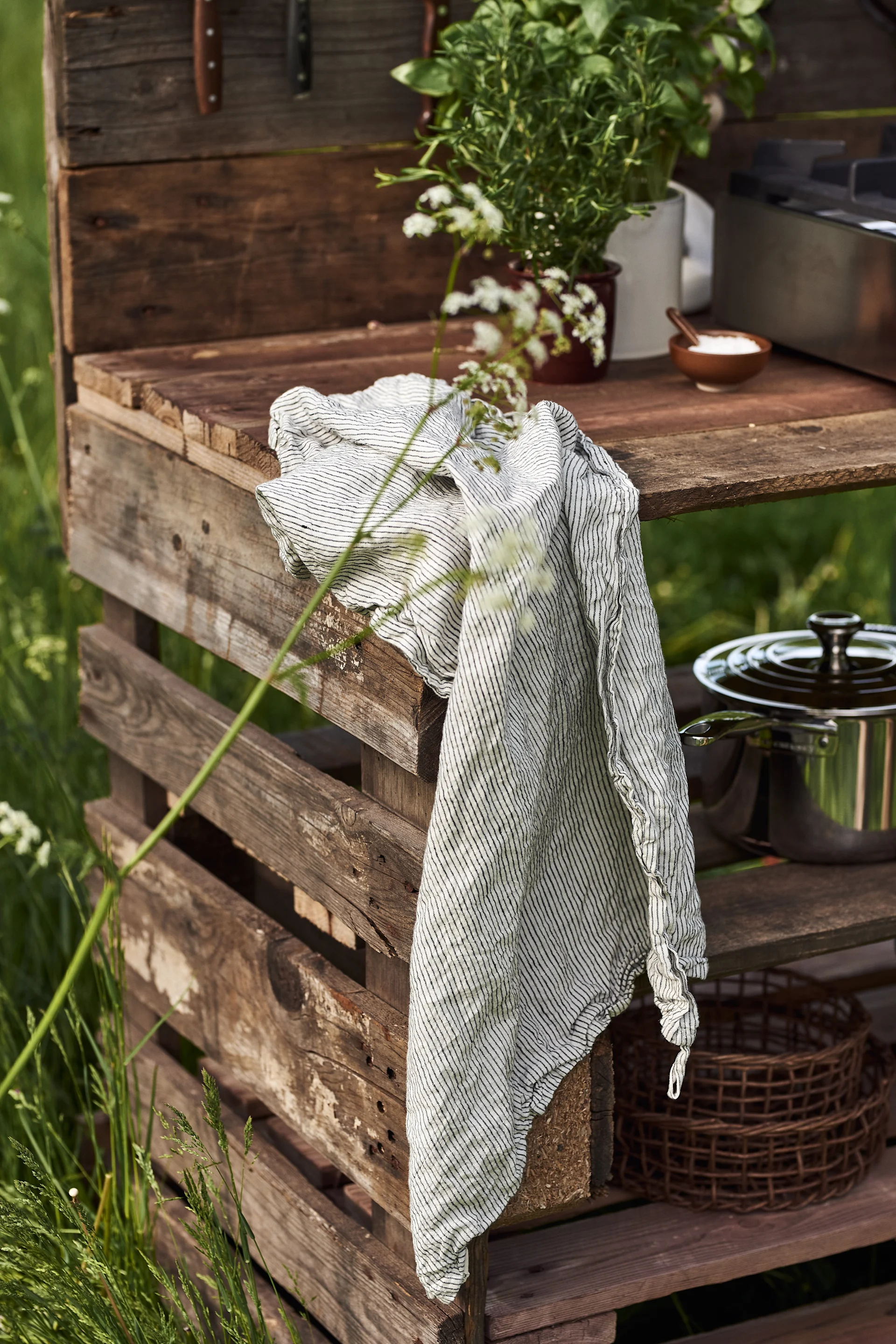 FISKARS Sartén All Steel | BROSTE COPENHAGEN Bote con tapa Nordic Sand | SERAX Utensilios de cocina Pure 5 piezas | FERM LIVING Salero con cuchara Petite 2 piezas |